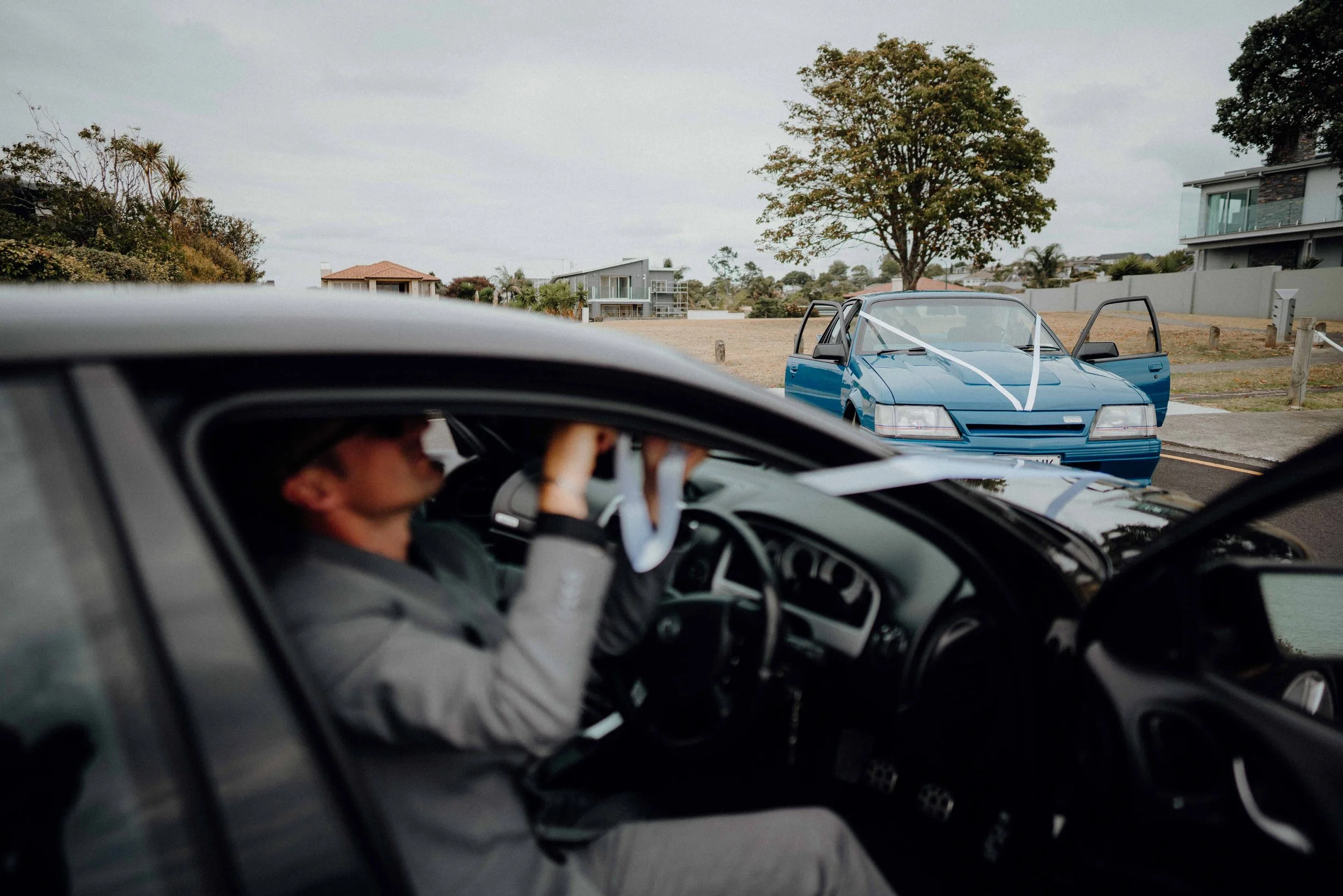 As I spent the morning with the girls, my second shooter Chris was hanging out with the boys at Dana and Aaron's house. Once the boys were ready, they drove down to the beach to trim up the wedding cars before heading to the venue for the first look.